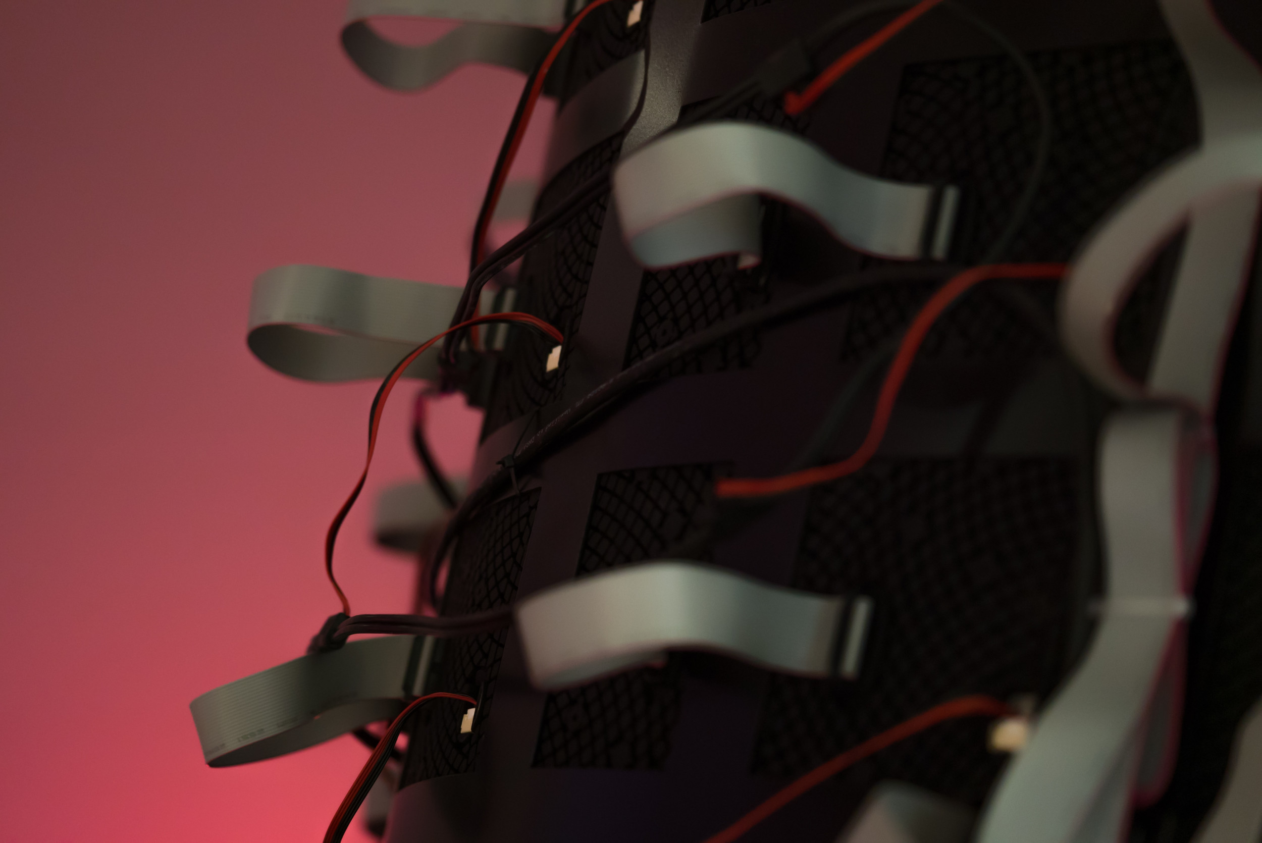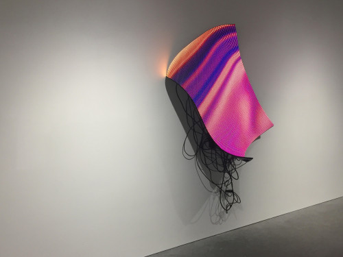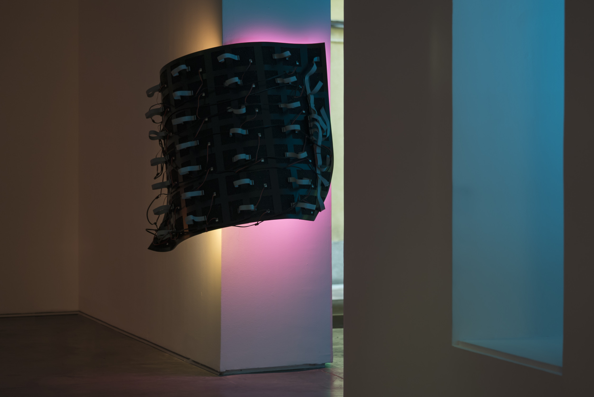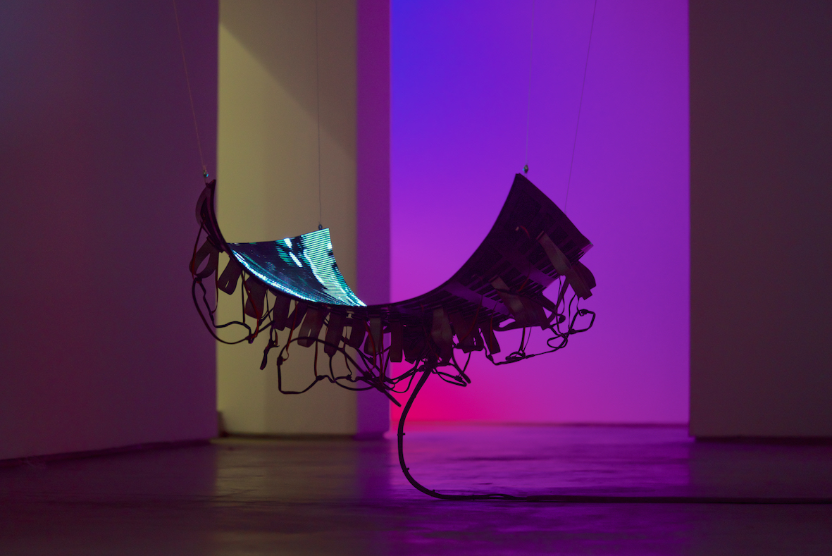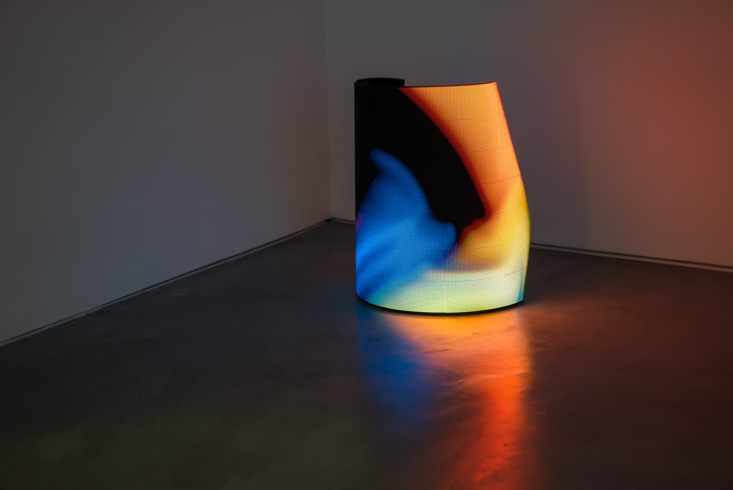 Flexible LED screen, computer, generative custom software, real-time data, metal structure