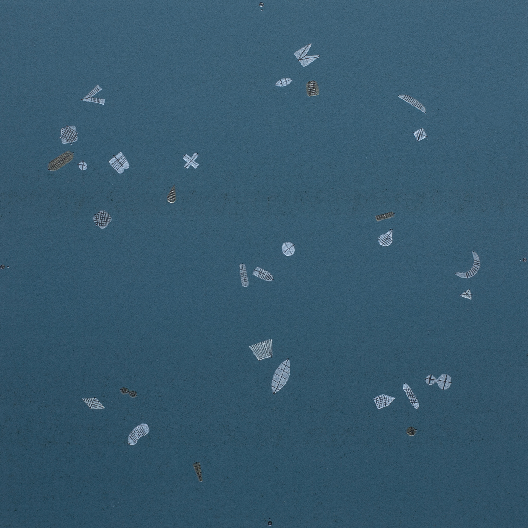 Indian ink, pencil, acrylic paint and colored pencil on paper