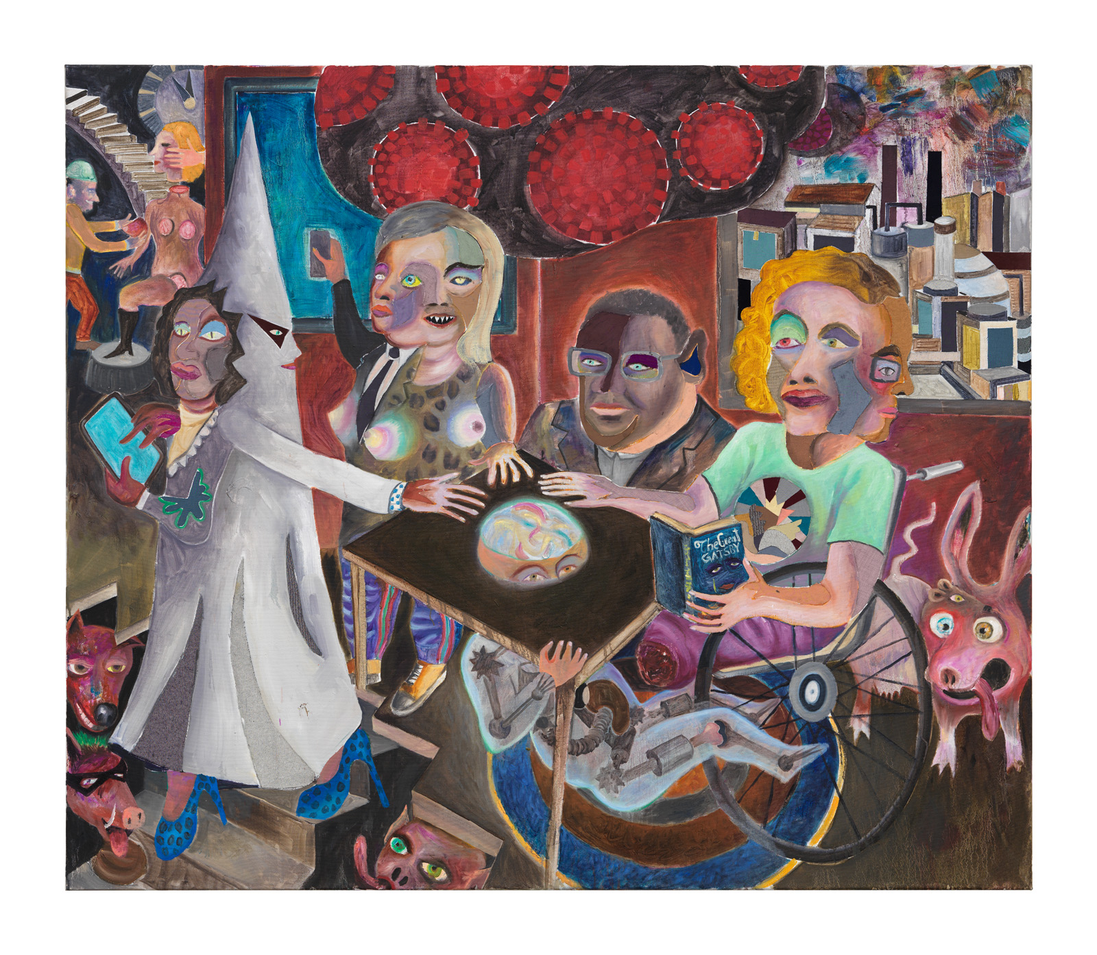 Boulevard News, 2020–2021 Oil and fabric on canvas 180 x 210 cm